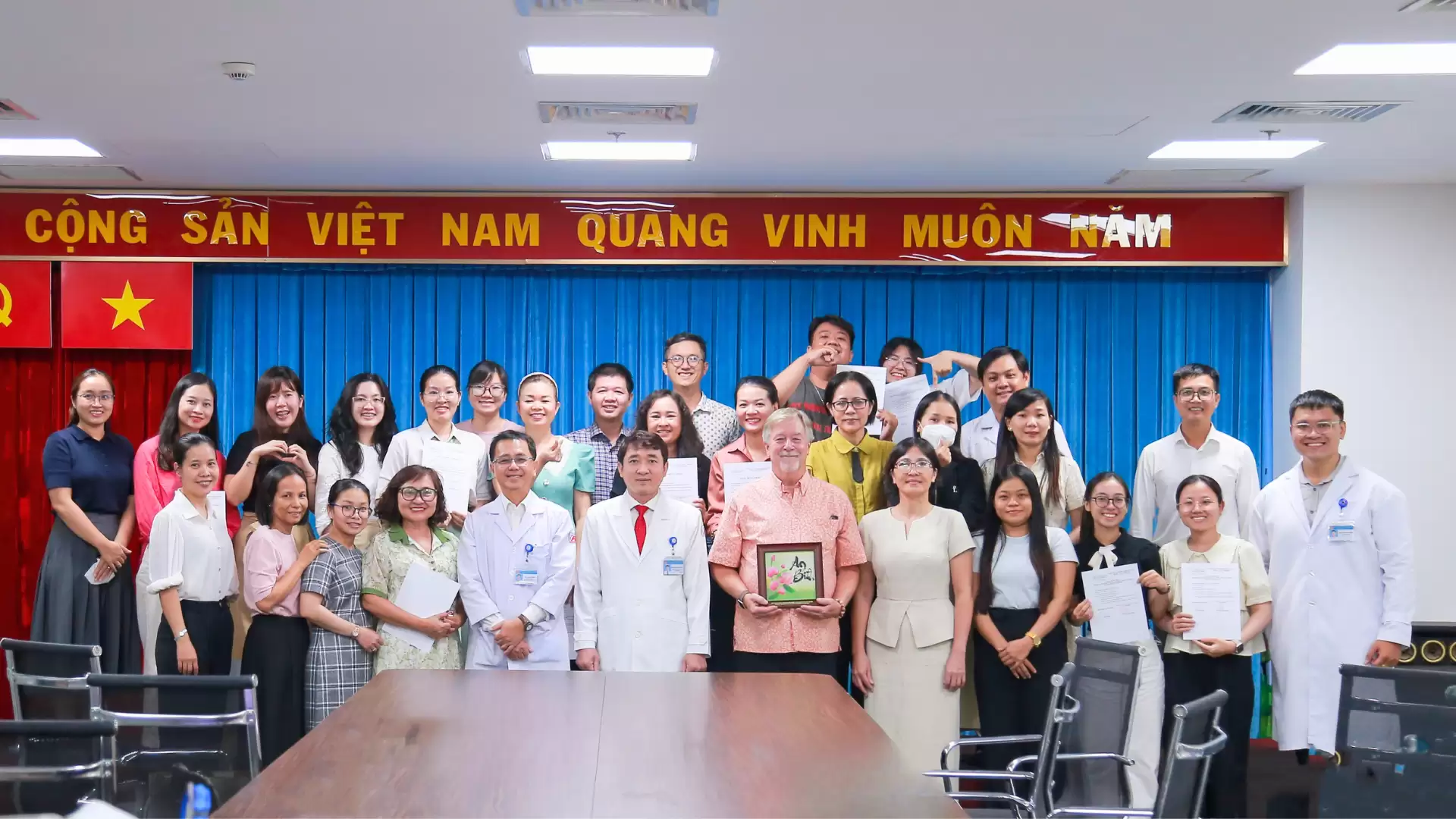 •BSCKII. Hồ Hải Trường Giang và Giáo sư Gilbert Tippy đã trực tiếp trao Chứng nhận hoàn thành chương trình tập huấn cho toàn thể các học viên, ghi nhận sự nỗ lực học tập và cam kết nâng cao chuyên môn của đội ngũ y tế.