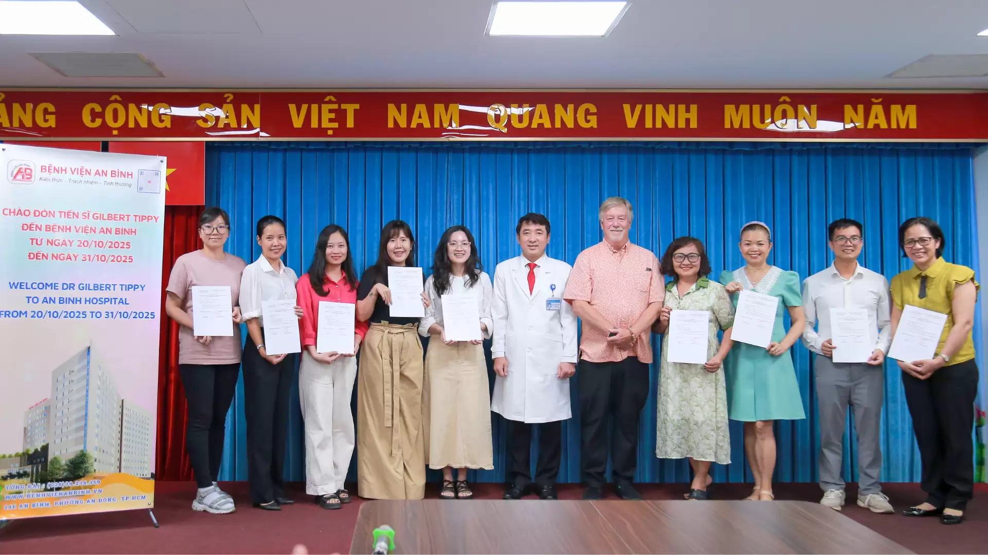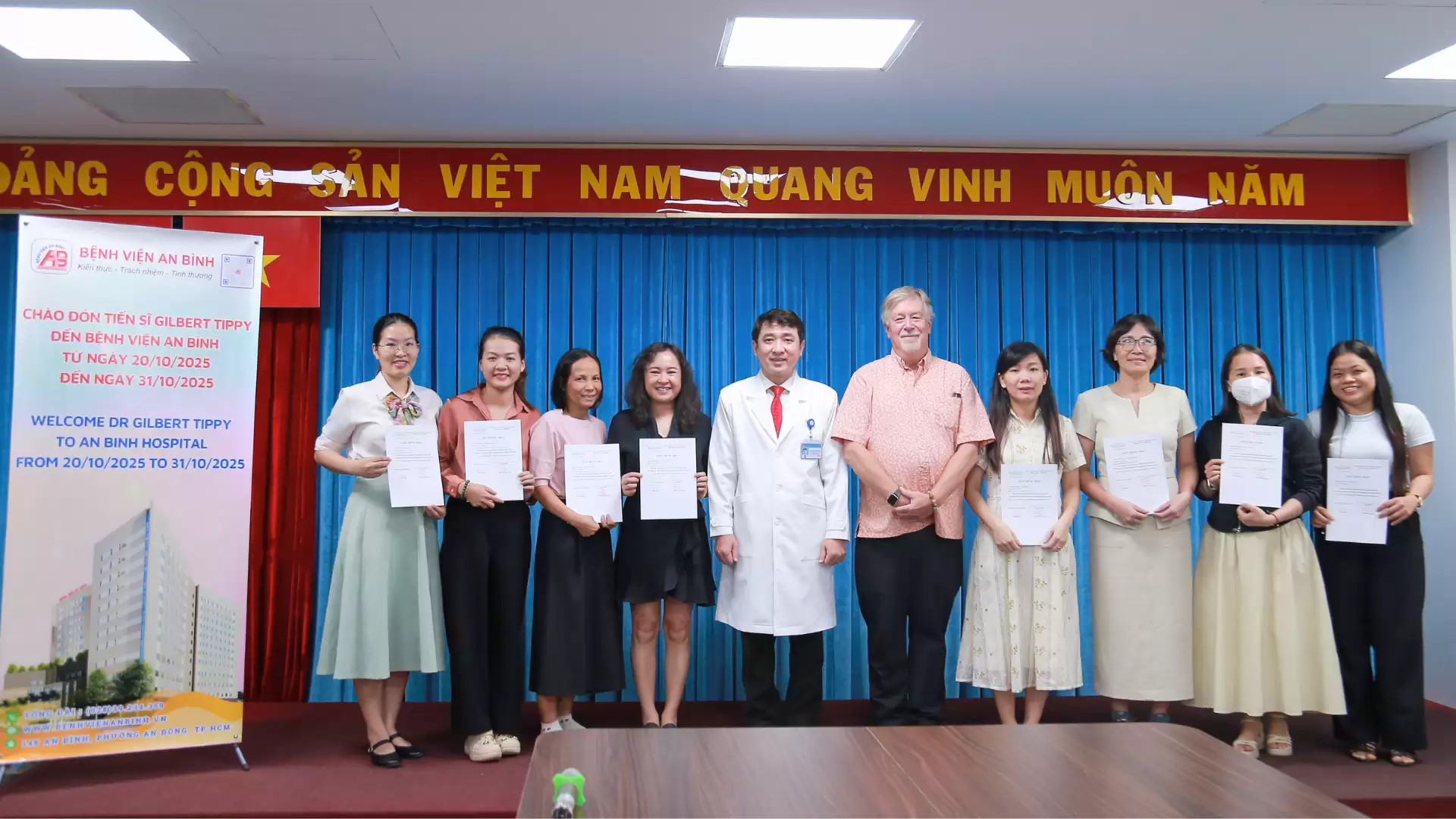 Sau 03 ngày diễn ra thành công (từ 20/10/2025), Bệnh viện An Bình đã tổ chức buổi Bế giảng và tổng kết Chương trình Tập huấn Chuyên môn Quốc tế với Giáo sư Gilbert Tippy – chuyên gia quốc tế trong lĩnh vực phát triển thần kinh nhi.