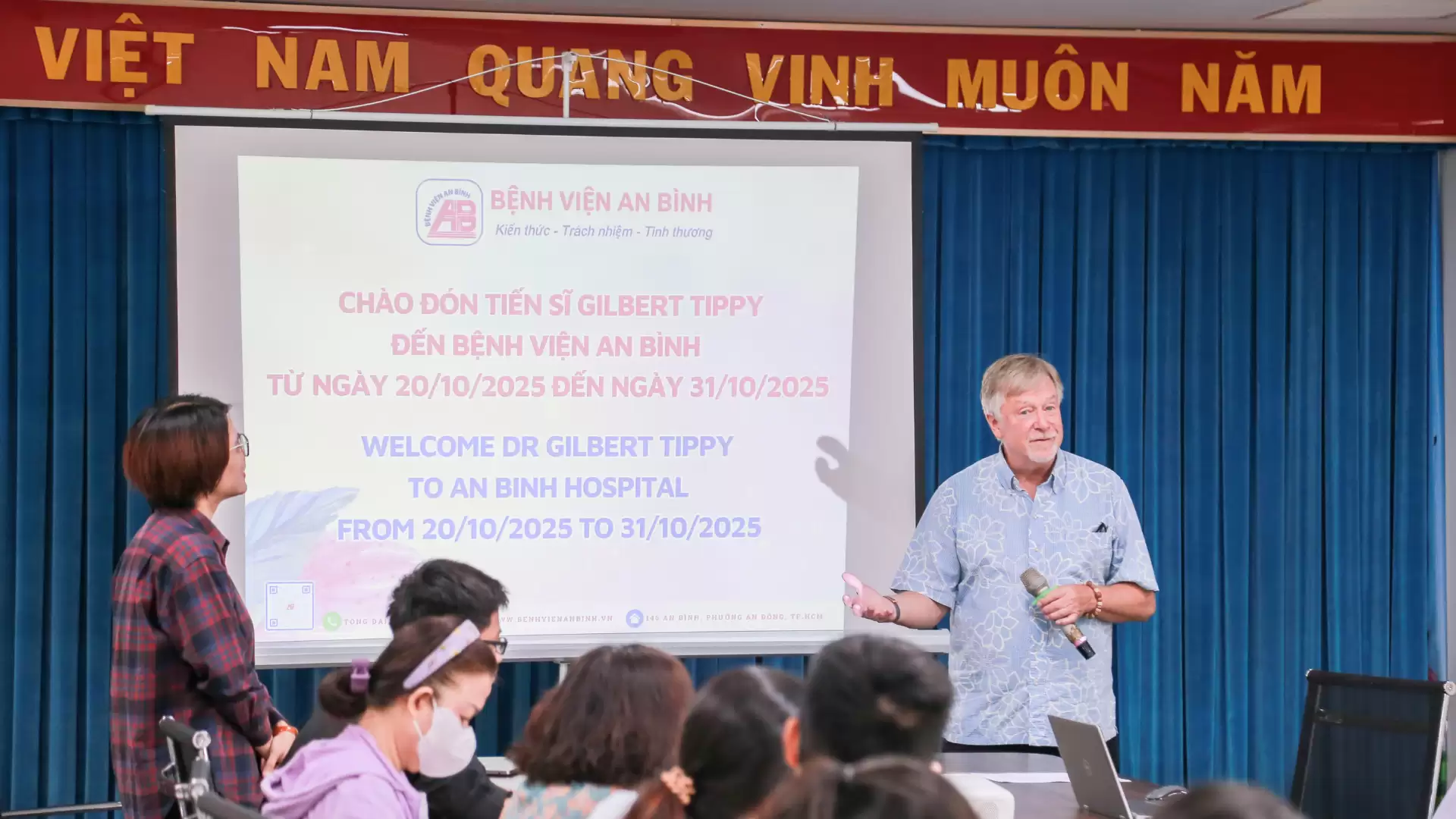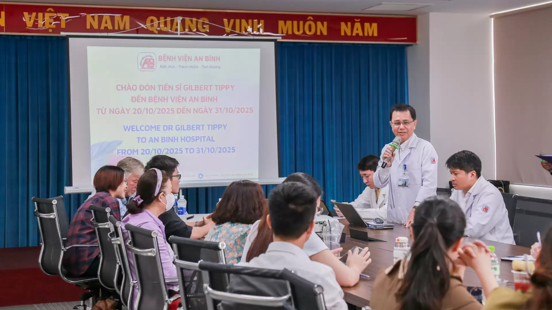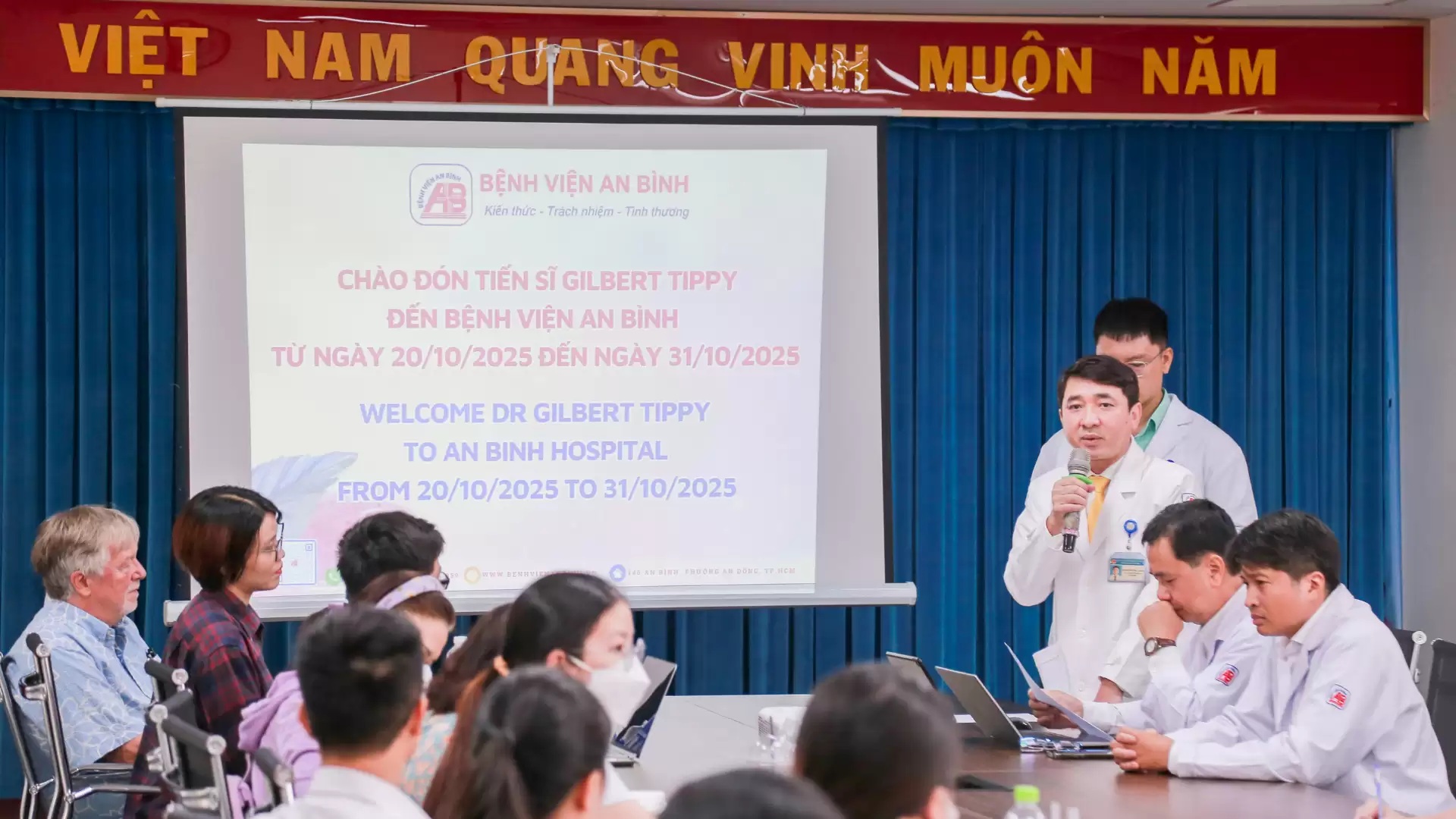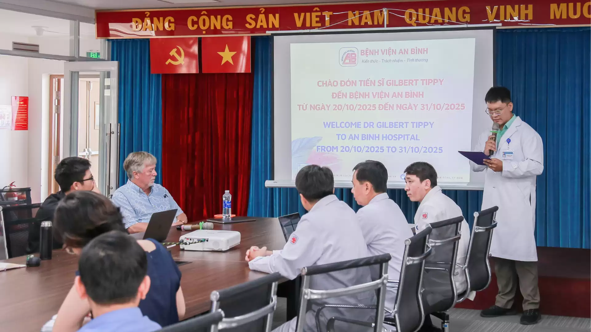 Bệnh viện An Bình tiếp đón, làm việc và trao đổi chuyên môn với Giáo sư Gilbert Tippy – chuyên gia quốc tế trong lĩnh vực phát triển thần kinh nhi, từ ngày 20/10/2025 đến 31/10/2025. Chuyến công tác này được thực hiện với sự kết nối và hỗ trợ chi phí công tác cho Giáo sư Tippy từ Tổ chức Project Vietnam Foundation.