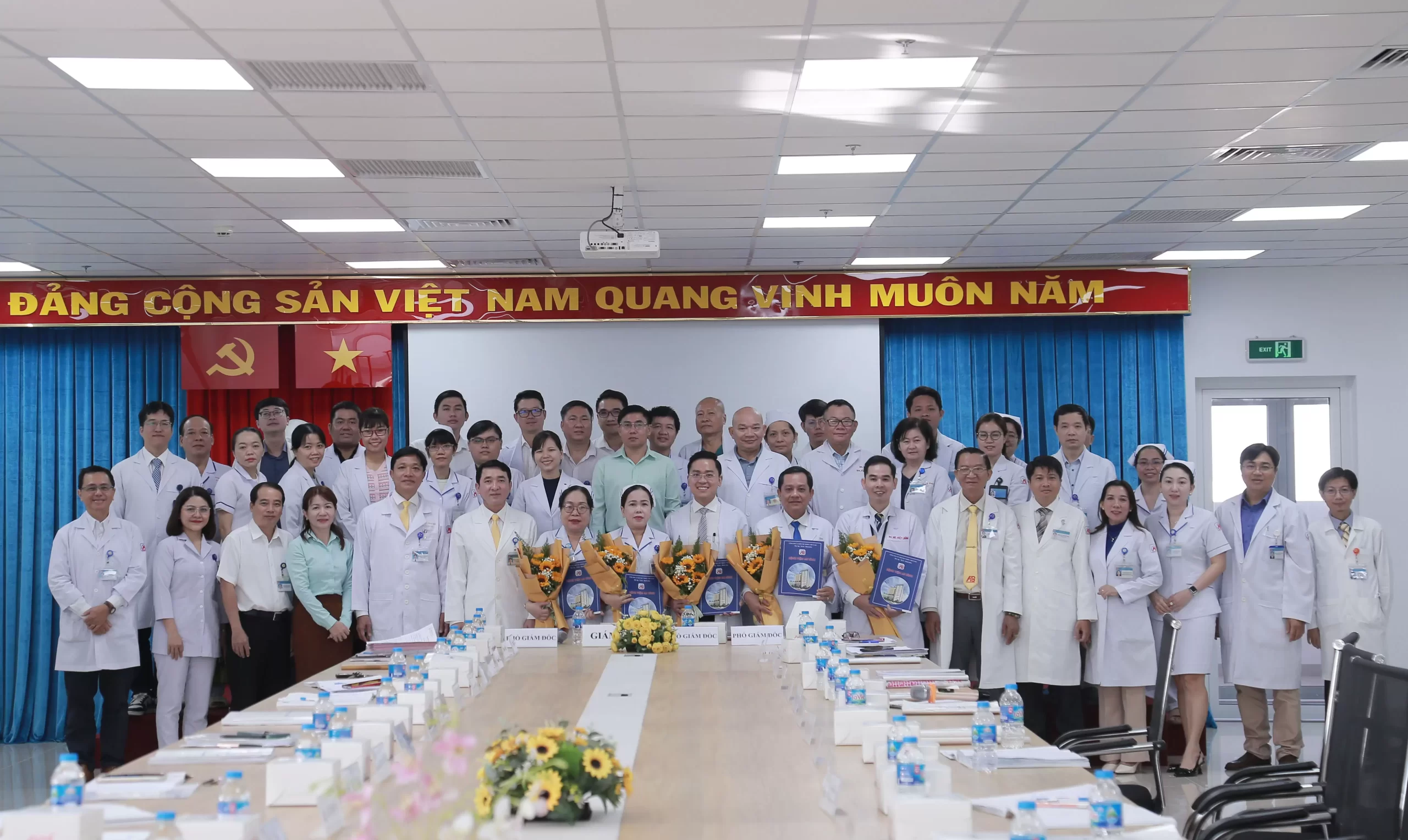 Nhân sự nhận Quyết định cùng Đảng ủy, Ban Giám đốc và tập thể cán bộ chủ chốt Bệnh viện An Bình