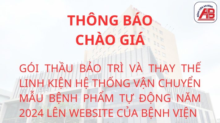 THÔNG BÁO MỜI CHÀO GIÁ GÓI THẦU BẢO TRÌ VÀ THAY THẾ LINH KIÊN HỆ THỐNG VẬN CHUYỂN MẪU BỆNH PHẨM TỰ ĐỘNG NĂM 2024 LÊN WEBSITE CỦA BỆNH VIỆN