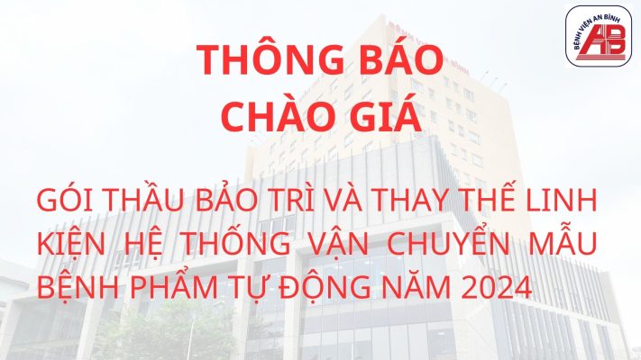 THÔNG BÁO MỜI CHÀO GIÁ GÓI THẦU BẢO TRÌ VÀ THAY THẾ LINH KIÊN HỆ THỐNG VẬN CHUYỂN MẪU BỆNH PHẨM TỰ ĐỘNG NĂM 2024