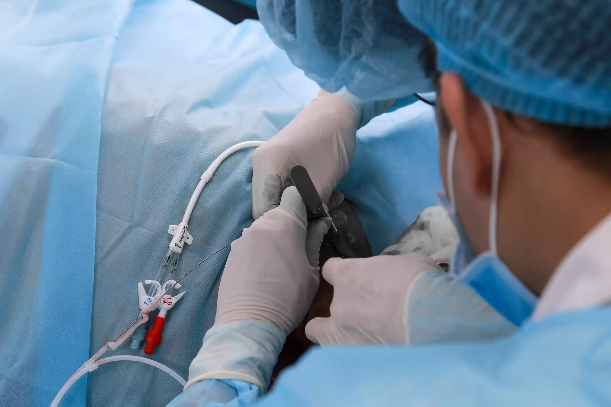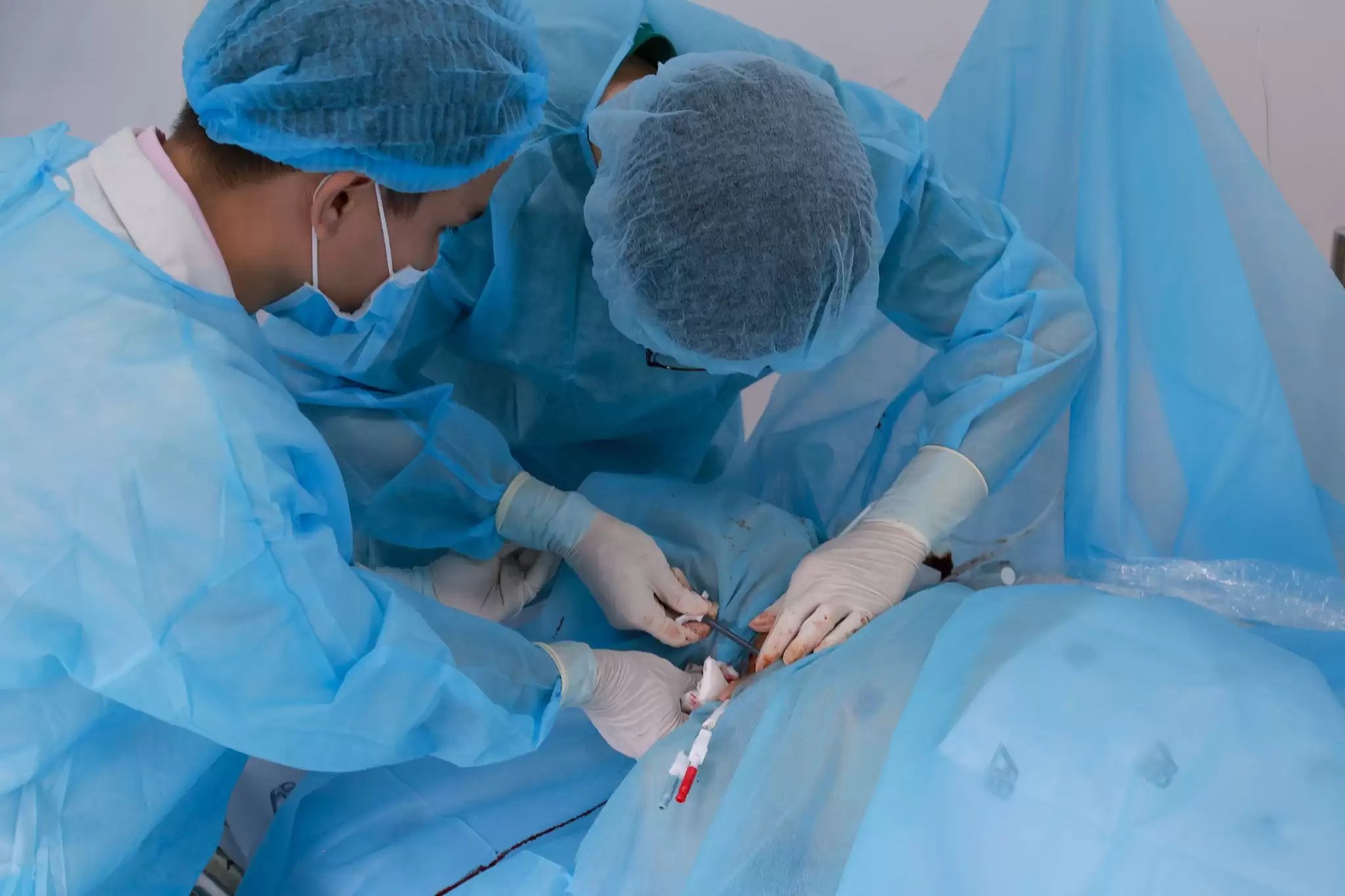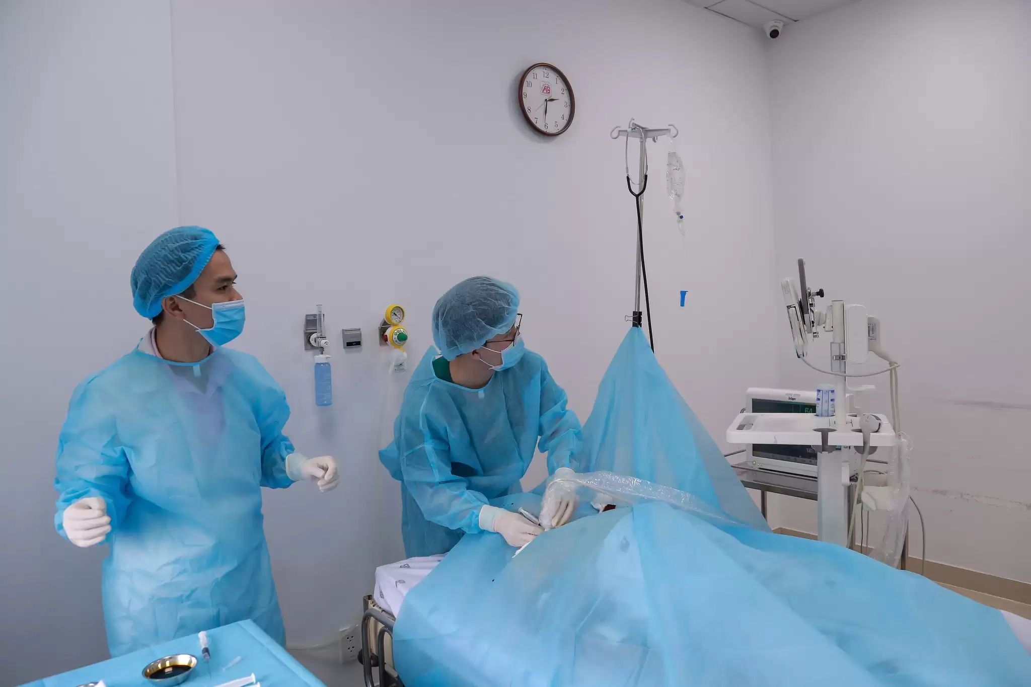 Catheter đường hầm có cuff được đặt dưới da theo đường hầm, có vòng cuff cố định giúp: Hạn chế di lệch catheter; Giảm nguy cơ nhiễm trùng so với catheter không đường hầm và phù hợp cho bệnh nhân chưa thể tạo cầu nối động – tĩnh mạch (AVF) hoặc đang chờ AVF trưởng thành. Ca can thiệp được thực hiện trong điều kiện vô khuẩn nghiêm ngặt, dưới hướng dẫn siêu âm, giúp tăng độ chính xác, giảm biến chứng và đảm bảo an toàn tối đa cho người bệnh. Sau thủ thuật, bệnh nhân ổn định, catheter hoạt động tốt, đáp ứng đầy đủ yêu cầu chạy thận nhân tạo.