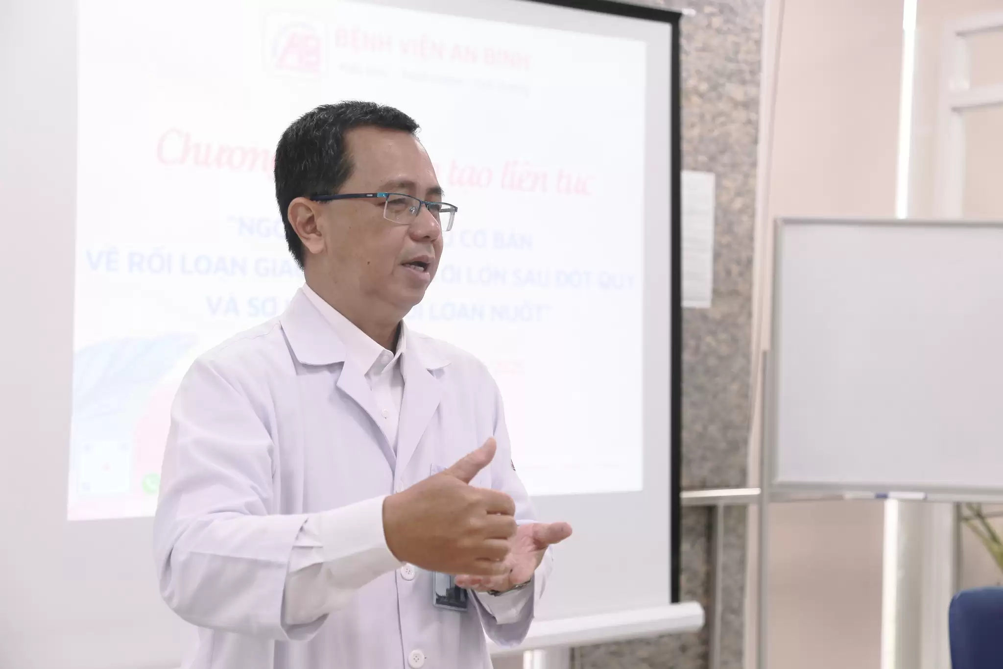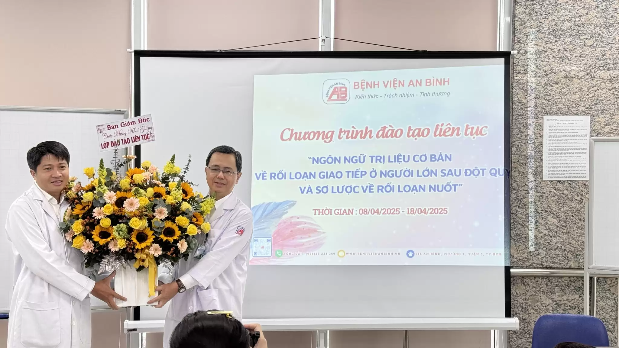Phát biểu tại buổi khai giảng, BS.CKII Nguyễn Đức Trung – Phó giám đốc Bệnh viện An Bình cho biết: “Khóa học “Ngôn ngữ trị liệu cơ bản về rối loạn giao tiếp ở người lớn sau đột quỵ và sơ lược về rối loạn nuốt” là hoạt động đào tạo liên tục được trú trọng tại bệnh viện An Bình vì hầu hết các bệnh viện chỉ có vật lý trị liệu làm chủ đạo trong phục hồi chức năng. Tuy nhiên, phục hồi chức năng không chỉ dừng lại ở vật lý trị liệu, mà còn có phạm vi rộng hơn như hoạt động trị liệu, ngôn ngữ trị liệu, tâm lý trị liệu…”