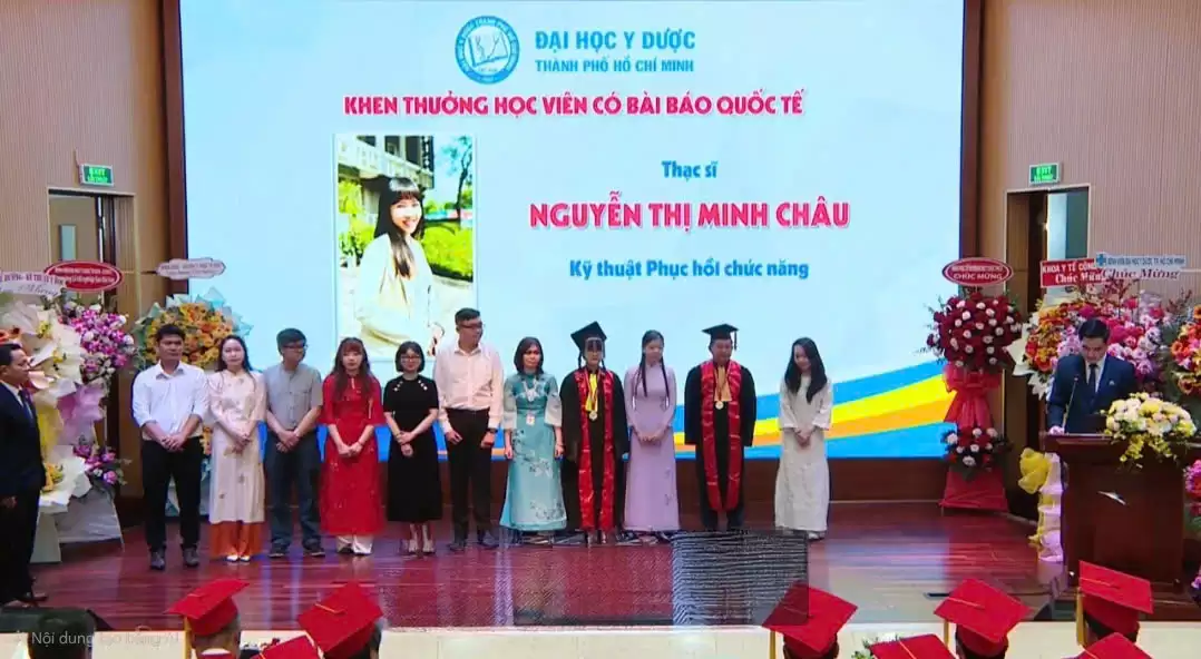 Trong Lễ tốt nghiệp Sau Đại học ngày 20/03/2025, Đại học Y Dược TP. Hồ Chí Minh đã trao giấy khen cho ThS. Nguyễn Thị Minh Châu – học viên Thạc sĩ Kỹ thuật Phục hồi chức năng niên khóa 2021-2023 (chuyên ngành Ngôn ngữ Trị liệu), vì thành tích công bố bài báo quốc tế trên Journal of Voice (Elsevier). Hiện ThS. Châu đang công tác tại Khoa Phục hồi chức năng – Bệnh viện An Bình.