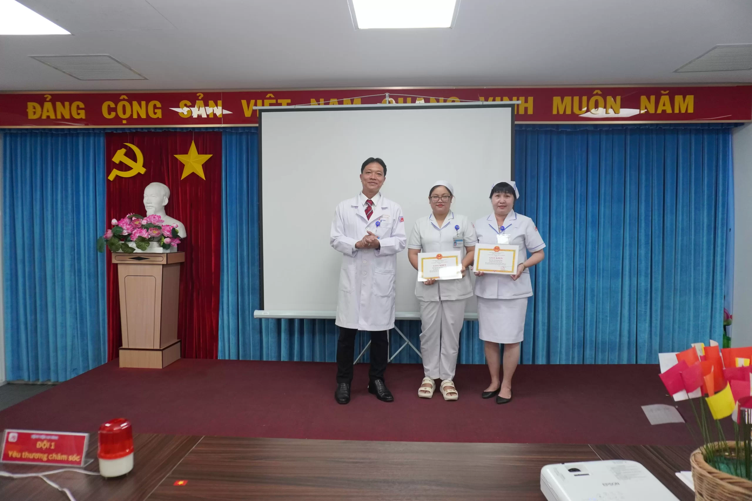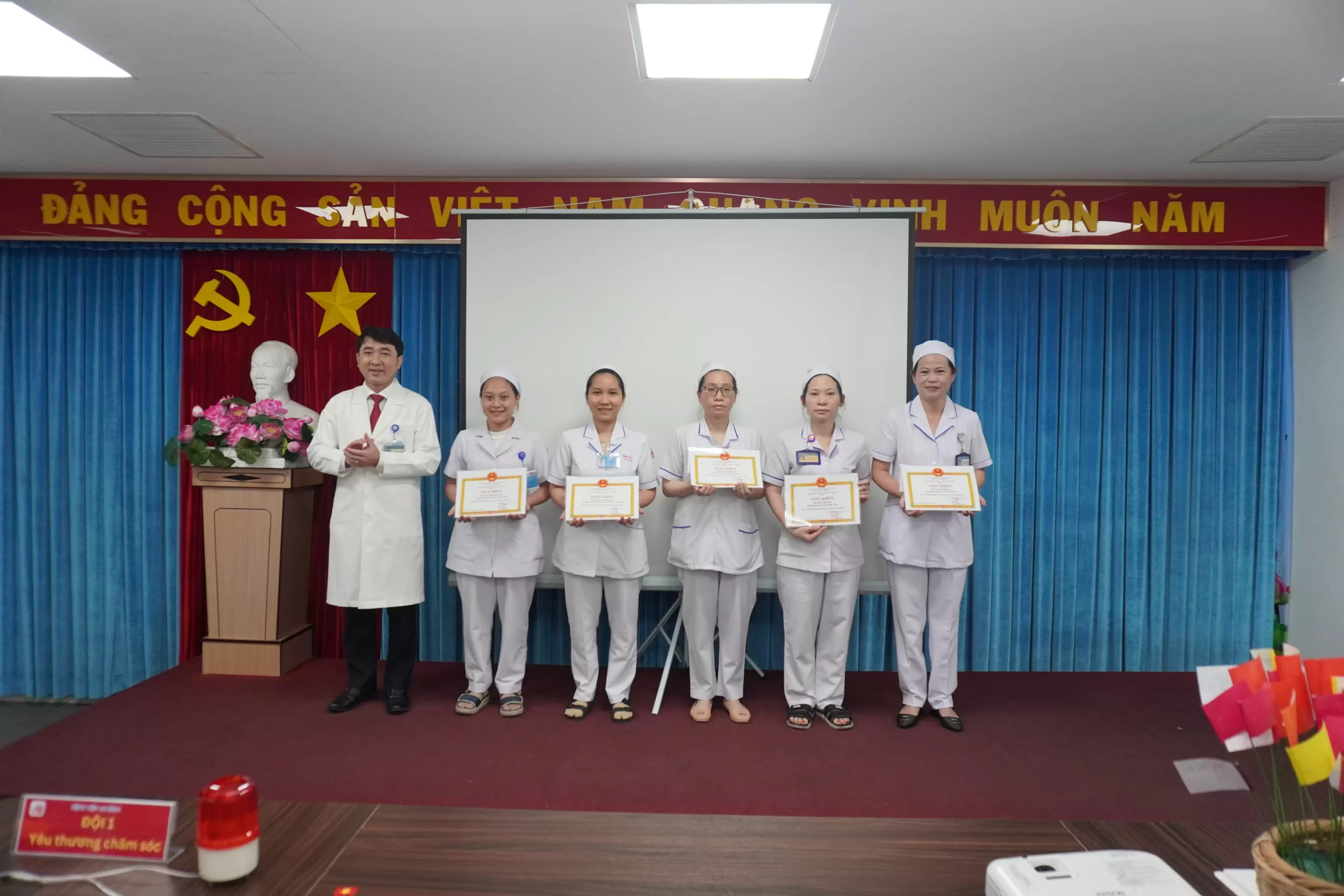 Tại buổi lễ, Ban Giám đốc Bệnh viện đã trao giấy khen biểu dương các điều dưỡng có nhiều đóng góp trong công tác chăm sóc người bệnh và các cá nhân Hộ sinh có nhiều đóng góp trong công tác chăm sóc sức khỏe sinh sản, sức khỏe bà mẹ và trẻ sơ sinh . Đây là một hành động thiết thực và đầy trân quý, thể hiện sự ghi nhận sâu sắc của lãnh đạo bệnh viện đối với những nỗ lực thầm lặng nhưng vô cùng to lớn của đội ngũ điều dưỡng.
