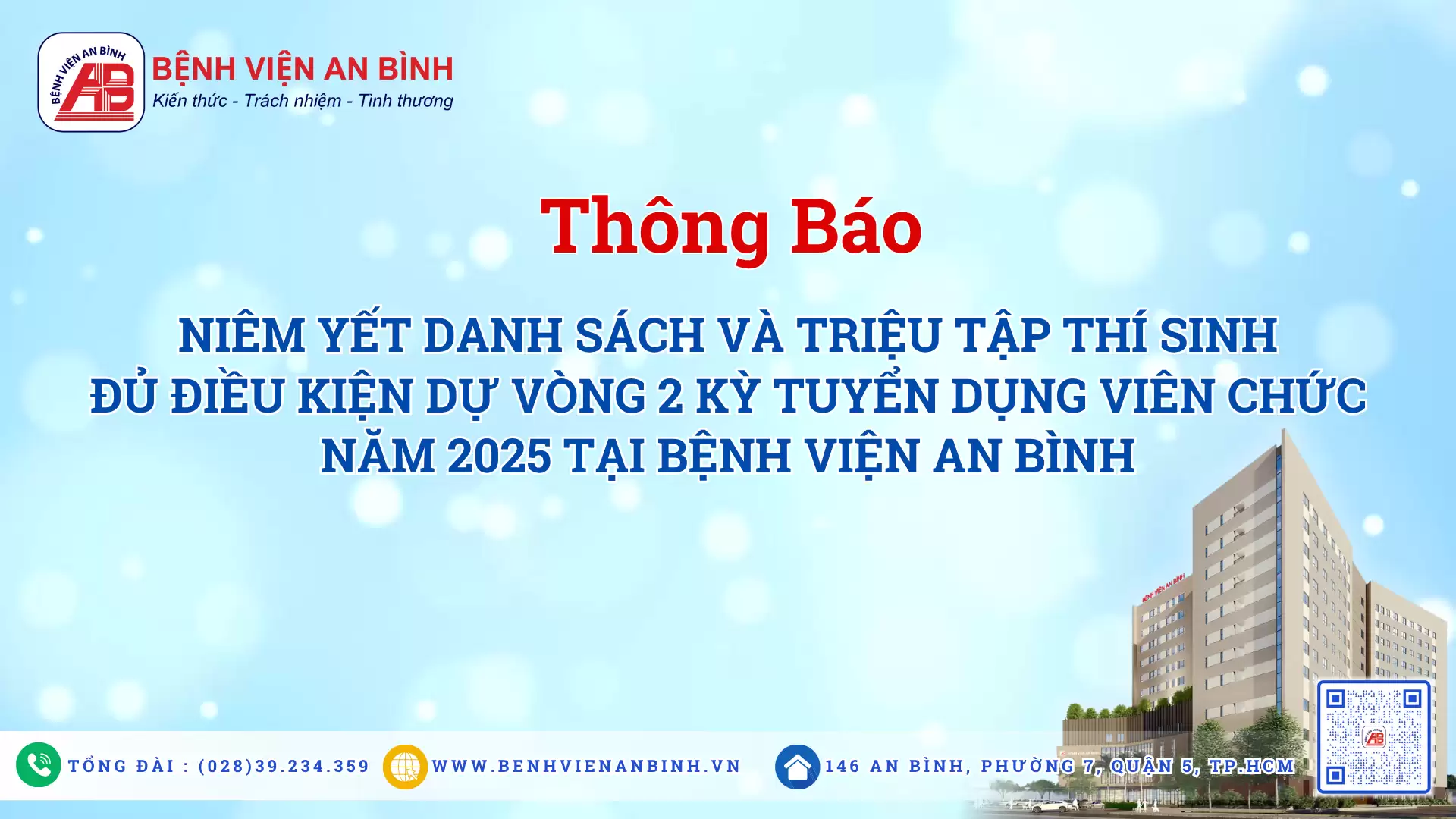 Niêm yết danh sách và Triệu tập thí sinh đủ điều kiện dự Vòng 2 kỳ tuyển dụng viên chức năm 2025 tại Bệnh viện An BìnhTài liệu tải về: Niêm yết danh sách và Triệu tập thí sinh đủ điều kiện dự Vòng 2 kỳ tuyển dụng viên chức năm 2025 tại Bệnh viện An Bình Tiêm Botulinum toxin – Giải pháp điều trị hiệu quả các rối loạn vận động thần kinh Thư cám ơn Bà Triệu Thị Lón hỗ trợ phương tiện di chuyển cho bệnh nhân đi lại khó khăn trong bệnh viện