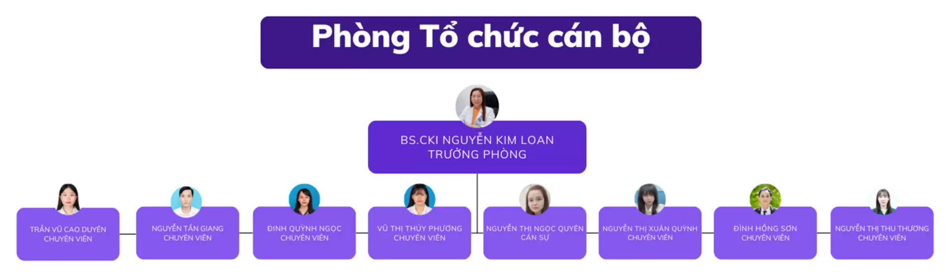 - Lãnh đạo đương nhiệm: BS CKI Nguyễn Kim Loan – Trưởng phòng (từ năm 2018 đến nay )