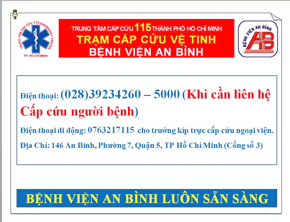 Bác sĩ chuyên khoa 2 Hồ Hải Trường Giang, Giám đốc Bệnh viện An Bình, cho biết Bệnh viện An Bình tọa lạc tại quận 5, là một trong những khu vực trung tâm TP với mật độ người dân sinh sống đông đúc. Tuy nhiên, hiện tại chưa có Trạm cấp cứu vệ tinh 115 phụ trách trên địa bàn quận 5.