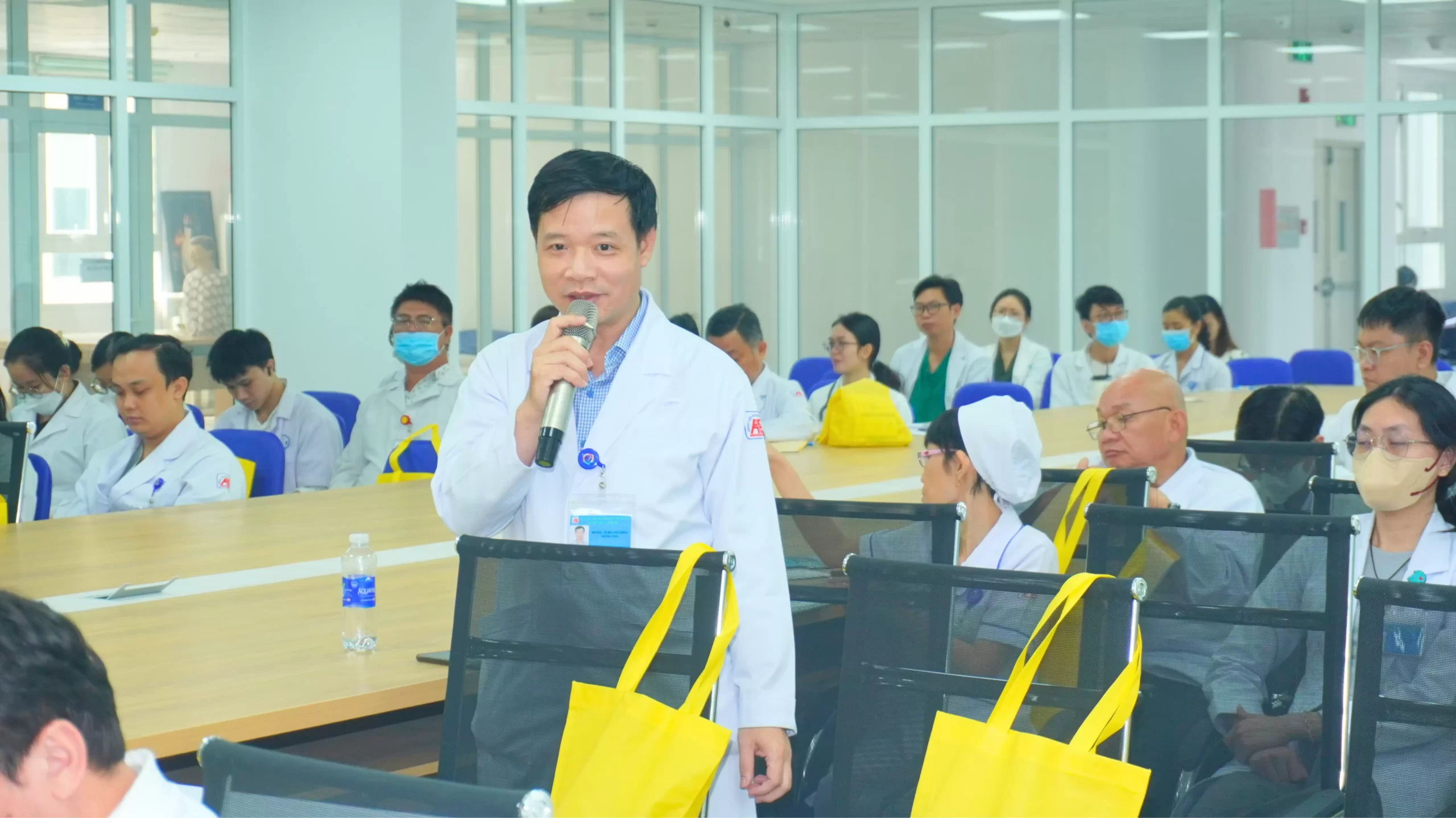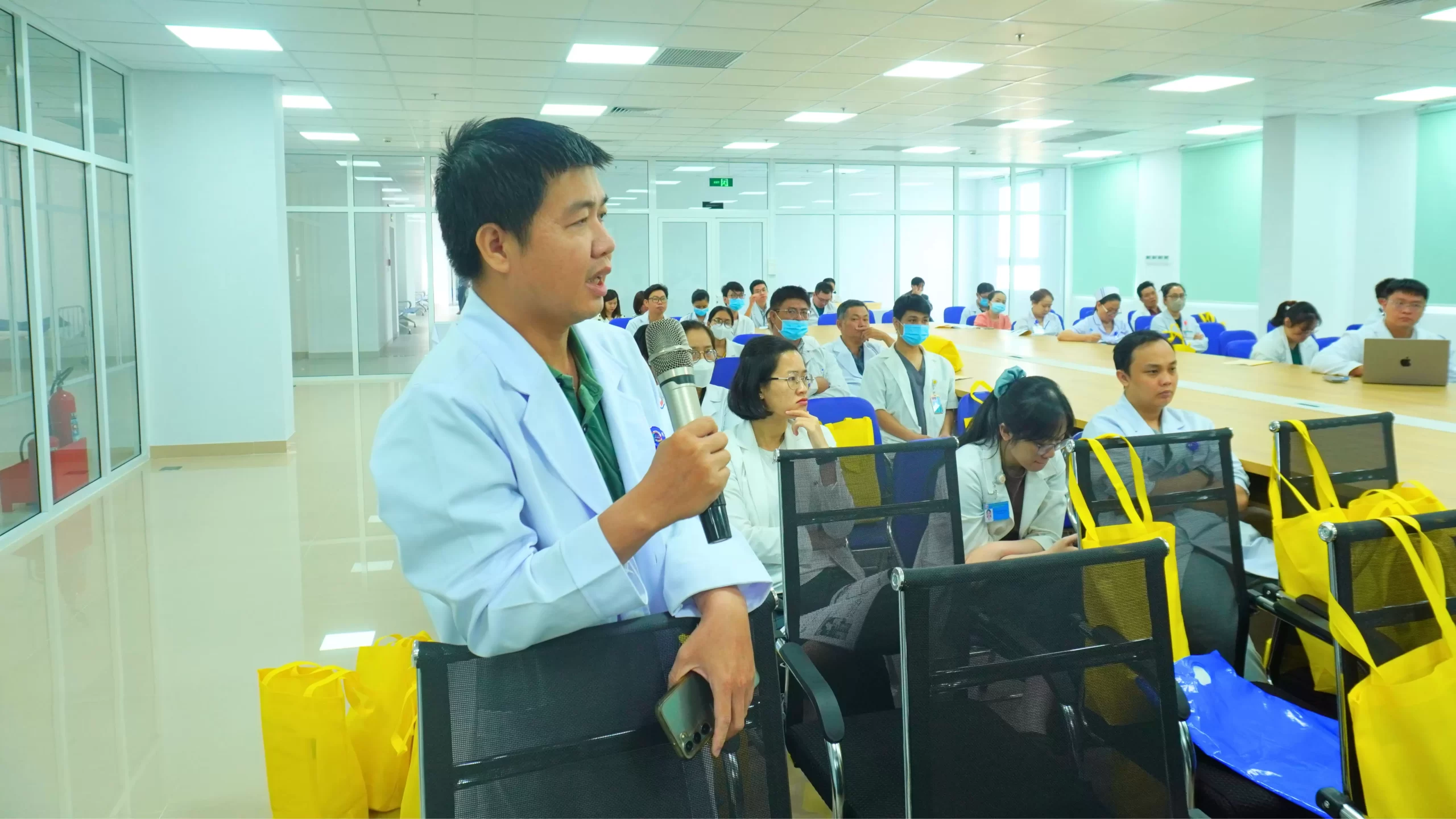Buổi sinh hoạt không chỉ cung cấp kiến thức cập nhật, mà còn là dịp để các nhân viên y tế đặt câu hỏi, thảo luận trực tiếp với báo cáo viên, xoay quanh các vấn đề thực tiễn lâm sàng, khó khăn trong tầm soát hen – COPD, cũng như các phương pháp can thiệp sớm và hiệu quả trong cộng đồng.