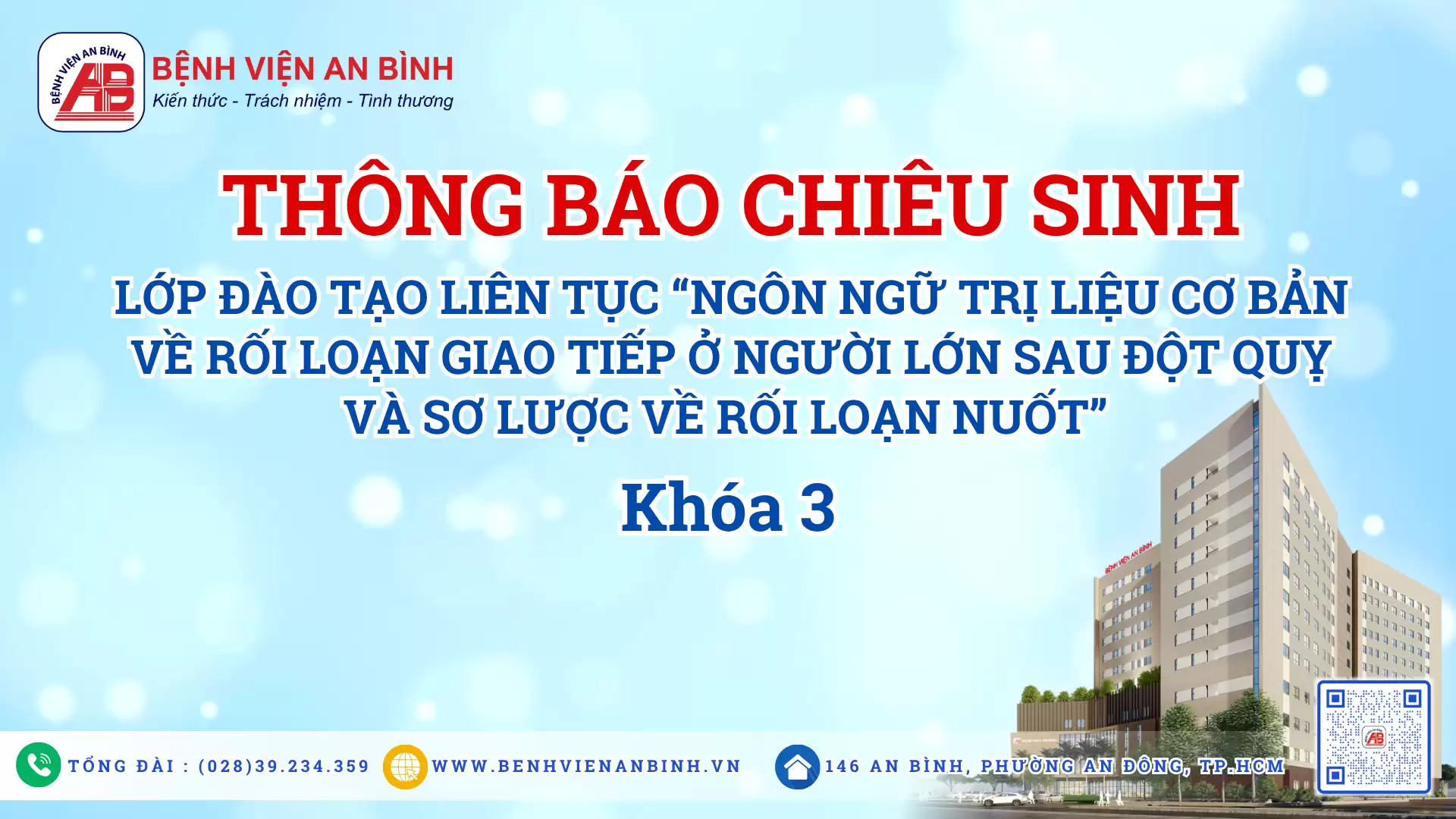 Liên kết xem tại đây: Thông báo chiêu sinh lớp đào tạo liên tục NNTLCB về rối loạn giao tiếp ở người lớn sau đột quỵ và sơ lược về rối loạn nuốt Khóa 3